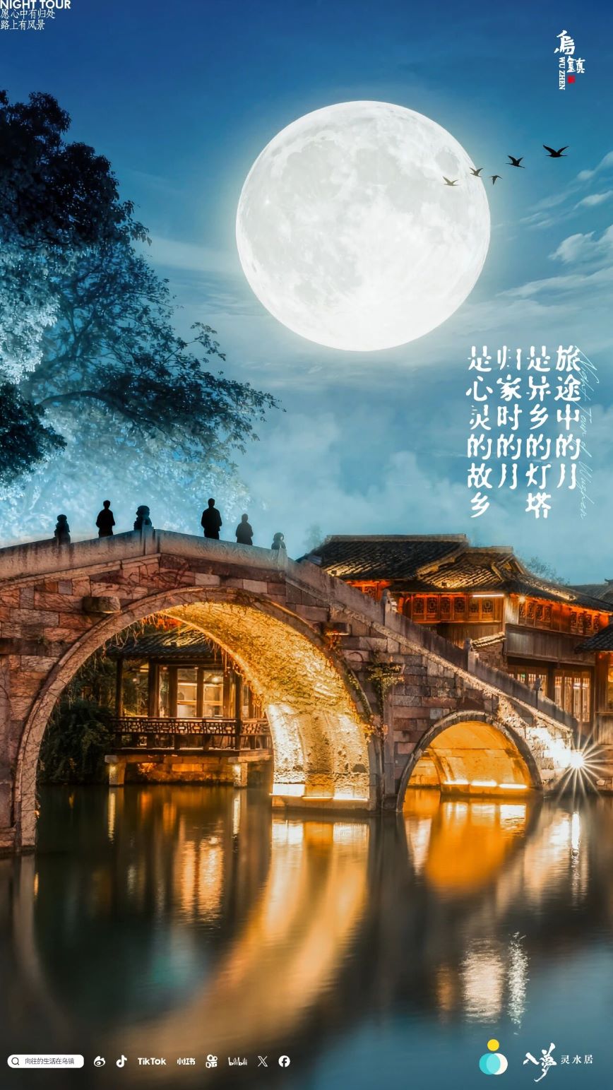 國(guó)慶邂逅中秋,烏鎮(zhèn)今夜別樣璀璨!當(dāng)暮色漫過(guò)水鄉(xiāng),不妨提一盞燈,隨人流走過(guò)祈福的石橋,去“昭明月集”淘選一件心儀好物,去水劇場(chǎng)追漫天泡泡,在莊重的祭月大典中分一塊團(tuán)圓月餅,最后在靈水居光影秀中沉浸式體驗(yàn)江南中秋夜的詩(shī)意與浪漫。